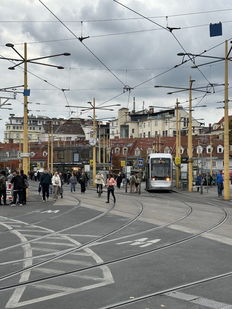Eine der vielen Straßenbahnen in Graz – zum Jako fährt sie gewiss