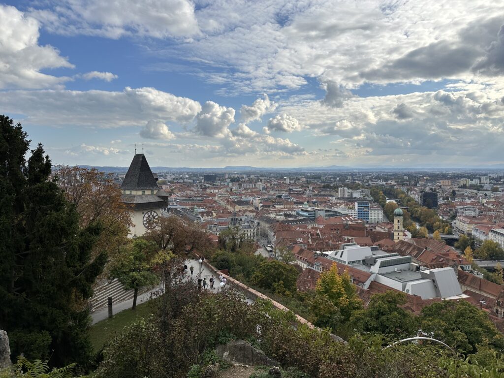 Der Grazer Schlossberg ist neben dem Uhrturm wohl die bekannteste Sehenswürdigkeit in Graz. Schließlich steht ja auf dem Schlossberg das Grazer Wahrzeichen, der Uhrturm. Insgesamt befinden sich aber weit über 30 verschiedene Sehenswürdigkeiten und Denkmäler allein auf dem Schlossberg Graz. Natürlich gibt es die bekannten Klassiker wie die Schlossbergbahn oder die historische Schlossbergstiege. Aber auch viele andere Kulturstätten und Attraktionen, die weniger bekannt sind, findest du dort oben. Wie zum Beispiel das Ägyptische Tor, der Hackher Löwe, das Cerrini-Schlössl oder die Kanonenhütte. Und natürlich ist der Grazer Schlossberg selbst als Berg mitten in der Stadt auch eine Attraktion – besonders mit seiner fantastischen 360° Aussicht über Graz.
