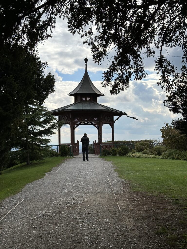Der Chinesische Pavillon auf dem Schlossberg Graz wurde um 1890 errichtet und ersetzte eine ältere, romanische Weinlaube. Er befindet sich auf einem malerischen Aussichtspunkt nahe der Bürgerbastei und bietet einen atemberaubenden Blick über die Dächer von Graz. Der Pavillon besticht durch seine filigrane Holzbauweise im fernöstlichen Stil, die an klassische chinesische Gartenarchitektur erinnert. Seine Lage macht ihn zu einem beliebten Ort für Spaziergänger, die hier eine kurze Pause einlegen und die Aussicht genießen möchten.